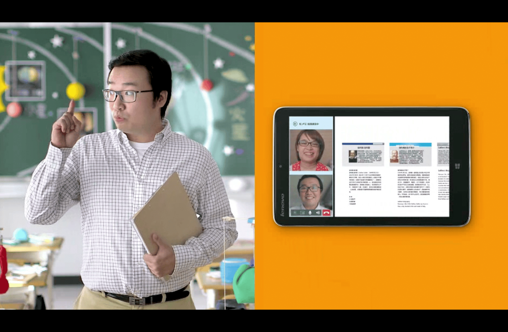 Grâce au split-screen, le film alterne entre les moments clés de sa journée en classe et la simplicité intuitive de Windows 8, qui s’intègre naturellement à ses méthodes d’enseignement pour stimuler la créativité de ses élèves.